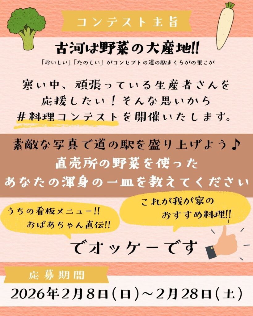 その名も、道の駅まくらがの里こが#お料理コンテスト~♪