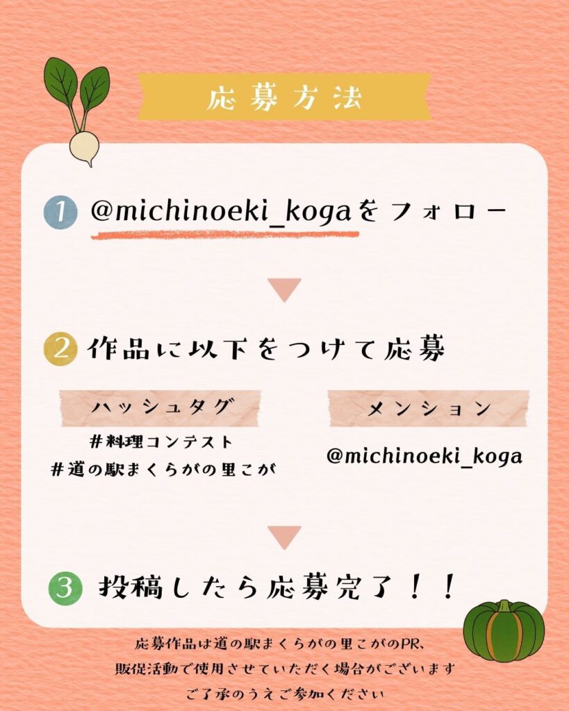 ② ハッシュタグ #料理コンテスト #道の駅まくらがの里こが
